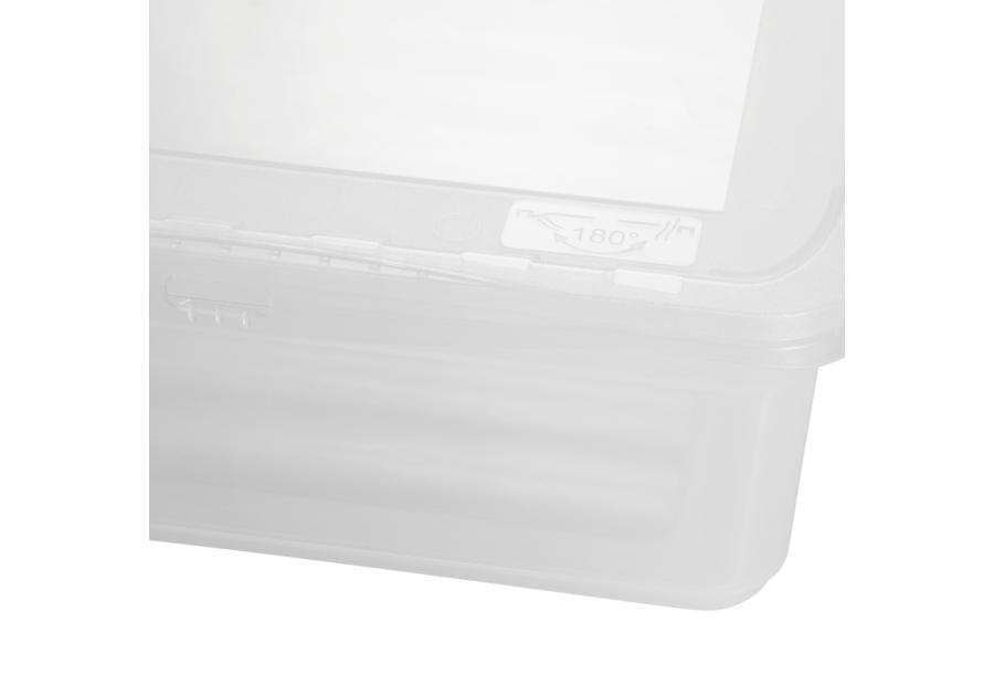 Wykonany z tworzywa sztucznego pojemnik do przechowywania jest odporny na zarysowania. Air-Control-System gwarantuje odpowiednią cyrkulację powietrza, dzięki czemu przechowywane przedmioty nie są narażone na działanie wilgoci. Produkt będzie odpowiedni do przechowywania różnego rodzaju rzeczy. W rezultacie sprawdzi się w: sypialni, garderobie, biurze, pokoju dziennym. Pojemnik 8 l ma przezroczysty kolor, więc bez otwierania produktu będziemy w stanie określić, co się z w nim znajduje. Do zestawu dołączono solidnie wykonaną pokrywkę. Element ten chroni przed wysypywaniem się przechowywanych w pojemniku przedmiotów, a dodatkowo umożliwia piętrowanie.